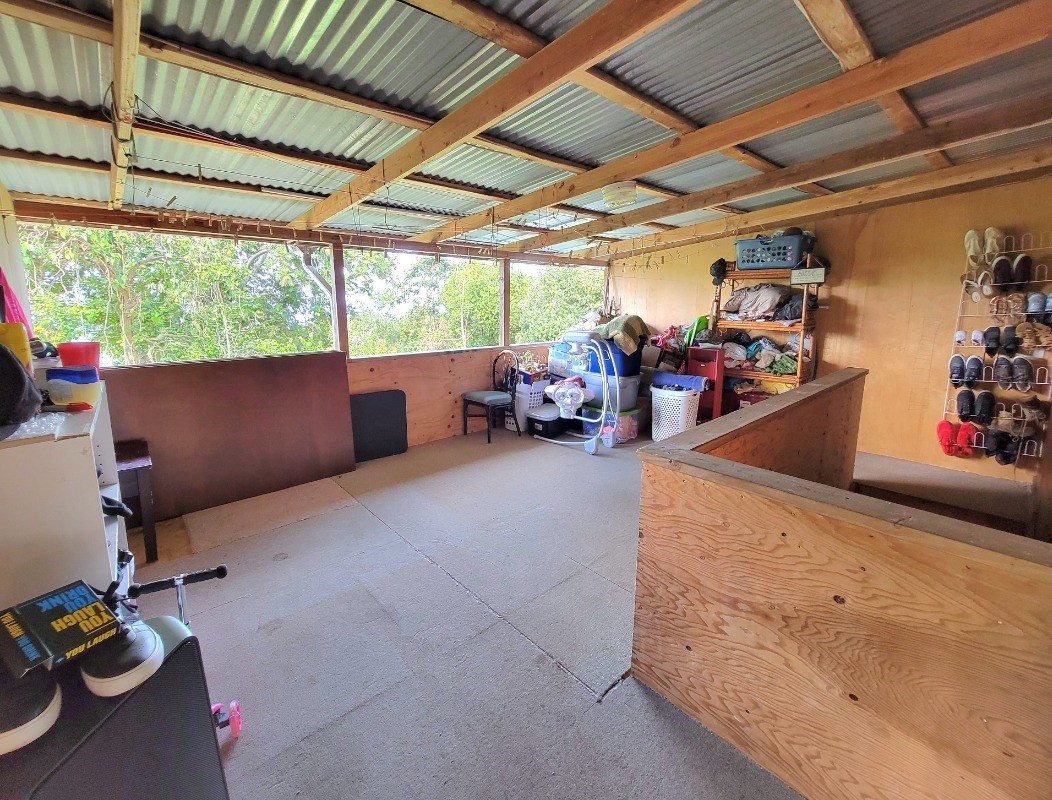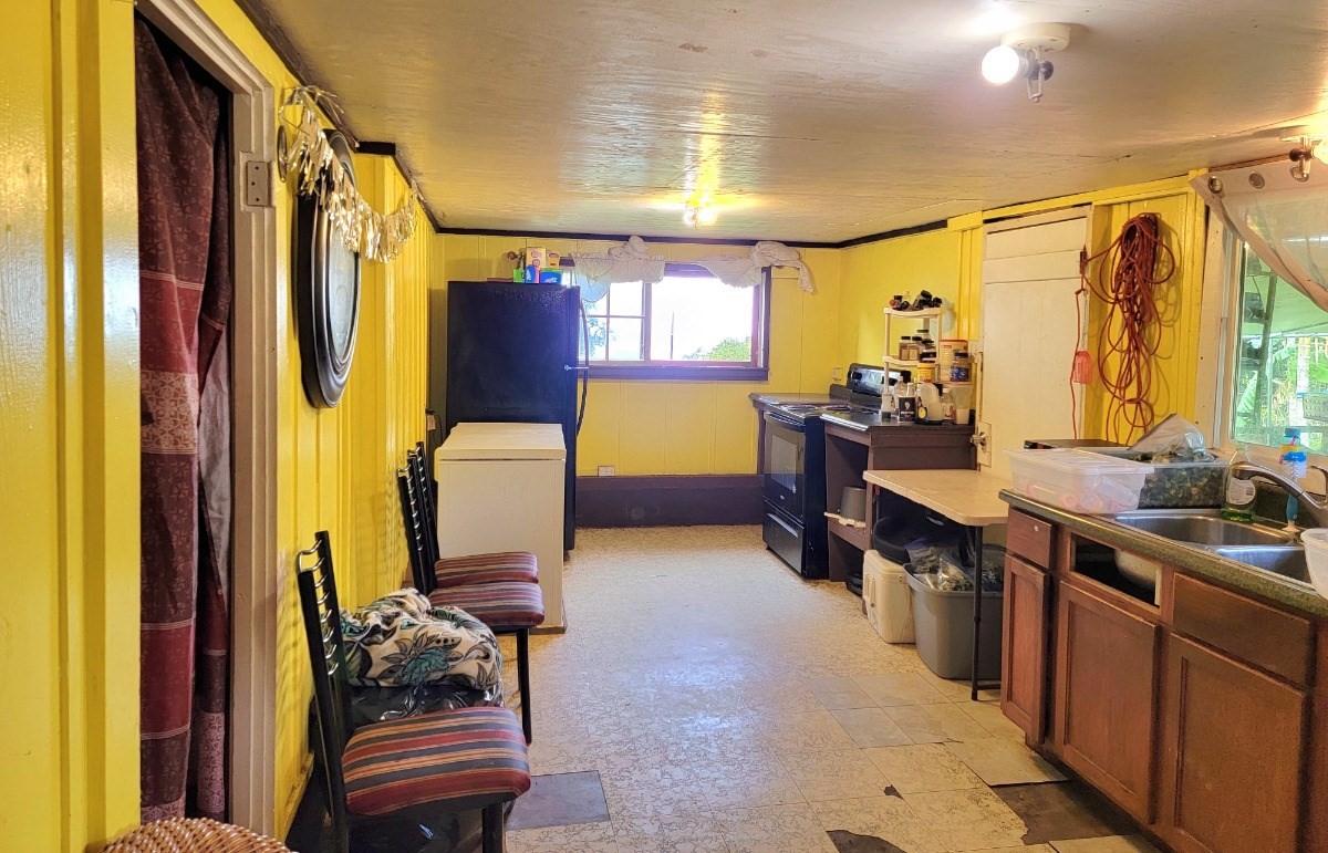 2 bedroom/1 bath farm dwelling/coffee shack sits at the top of the property, with a little peek-a-boo view of the ocean. Home was built in 1943 and is ready for your special TLC.